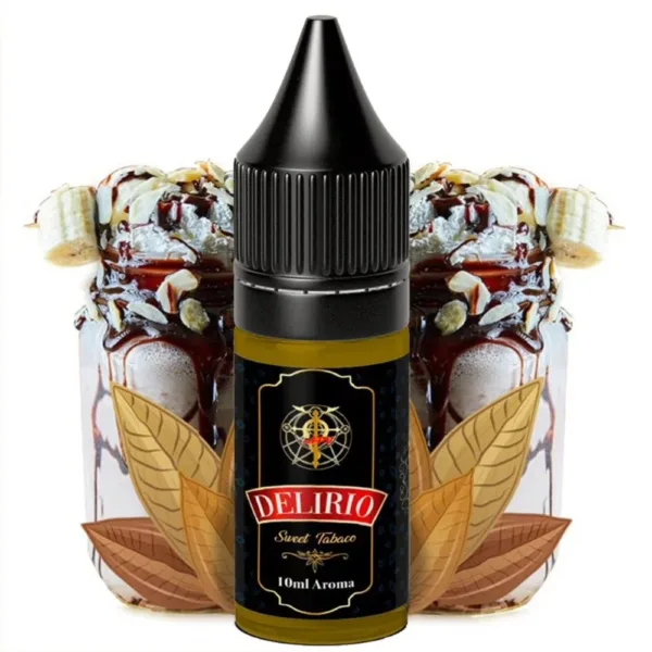 El precio original era: 7,50 €.5,90 €El precio actual es: 5,90 €.¡Este Aroma Alquimia Para Vapers Delirio es una locura! Hazte ya mismo tu líquido con sabor a tabaco rubio, batido de plátano y mocha, yogurt, caramelo, vainilla y chocolate negro.