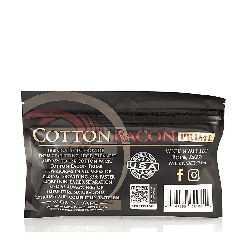 Cotton Bacon Prime de Wick N Vape es sin duda el algodón más vendido en la industrial del vapeo.