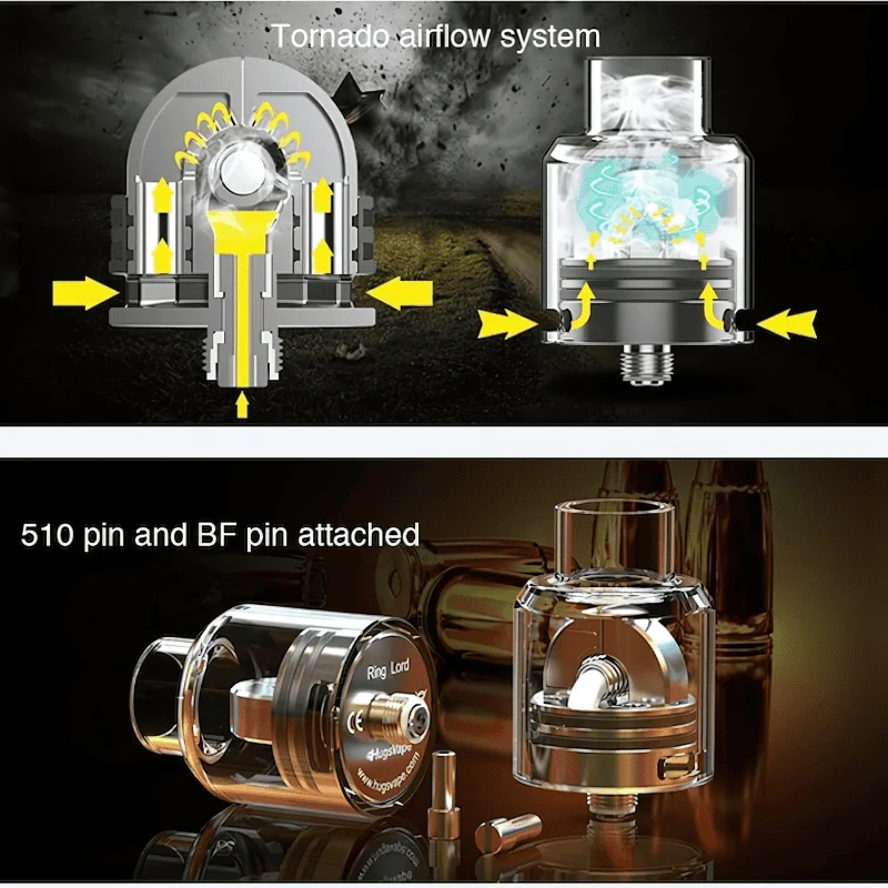 Es un deck para albergar una resistencia single coil y nos va a proporcionar un flujo de aire tipo tornado, un diseño antisalpicaduras y flujo de aire ajustable.