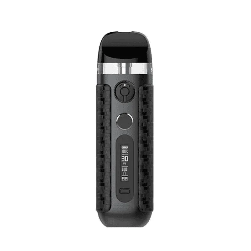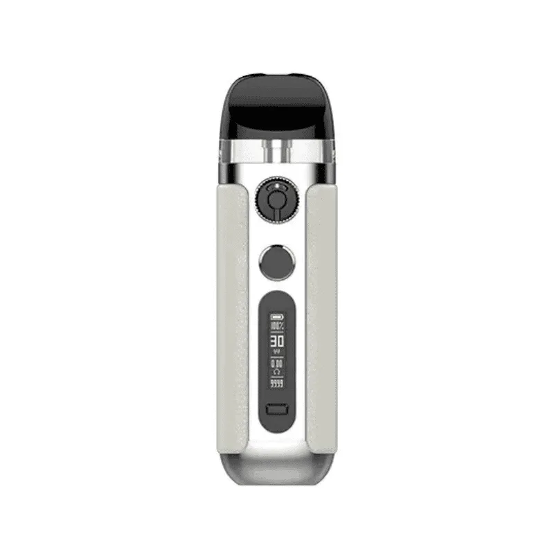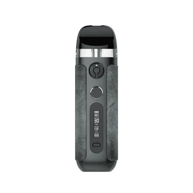 Cuenta con una batería interna de 900mAh que podemos recargar a través del puerto USB Tipo-C. En la parte frontal encontramos un anillo que nos permite regular el flujo de aire para adaptarlo para que demos la calada que más nos guste. La potencia es regulable también, teniendo un rango que va desde los 5W hasta los 30W. Toda la información la podremos ver desde la pantalla Oled de 0.49″. Para dar la calada lo podremos hacer de dos maneras: pulsando el botón o de manera automática.