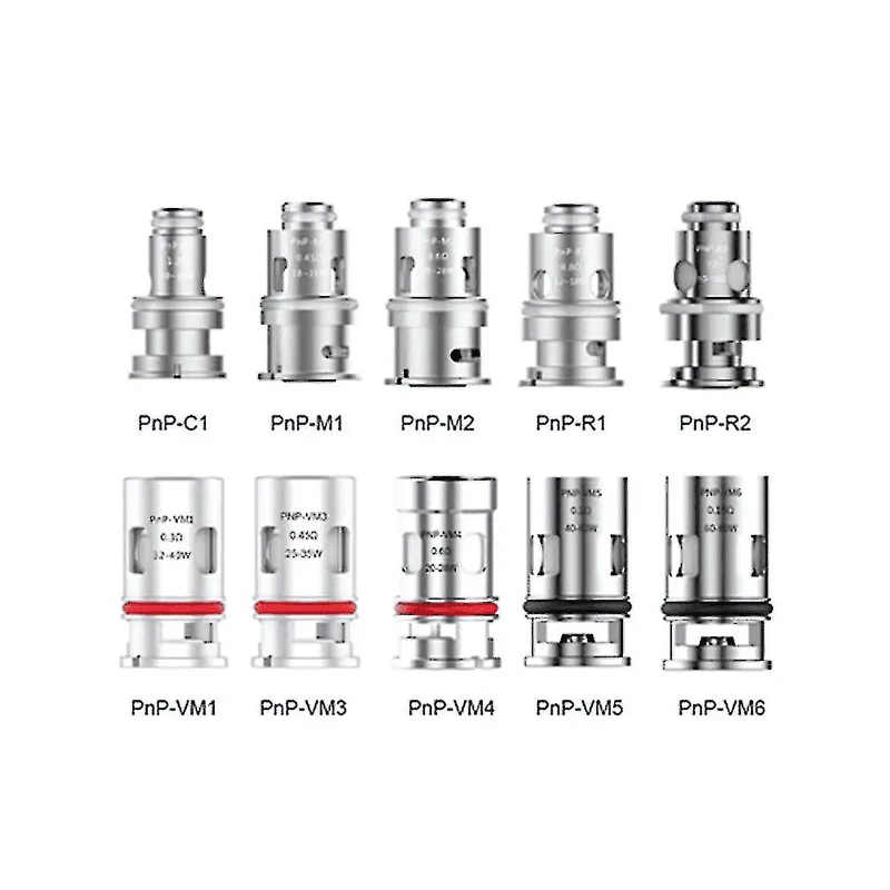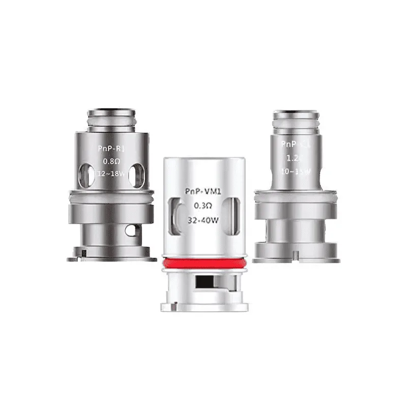 - PnP-VM1 una resistencia de estilo DL (Directo a pulmón) de 0.3ohm single mesh diseñado para funcionar entre 32W a 40W. Recomendado para: E-liquid convencional.
