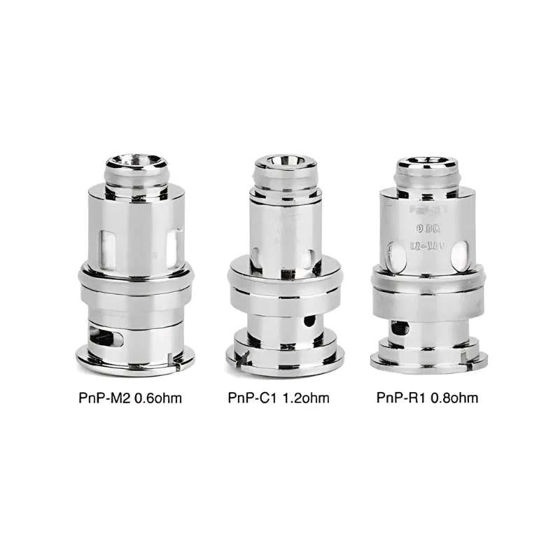 - PnP-C1 una resistencia de estilo MTL (Boca a pulmón) de 1.2ohm ceramic coil diseñado para funcionar entre 10W a 15W. Recomendado para: Sales de Nicotina de 20mg.
